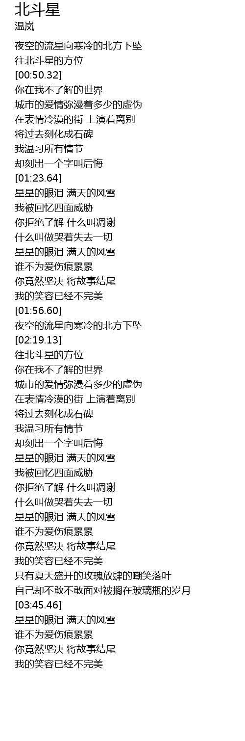 | [01:40.47] | 星星的眼泪 满天的风雪 |