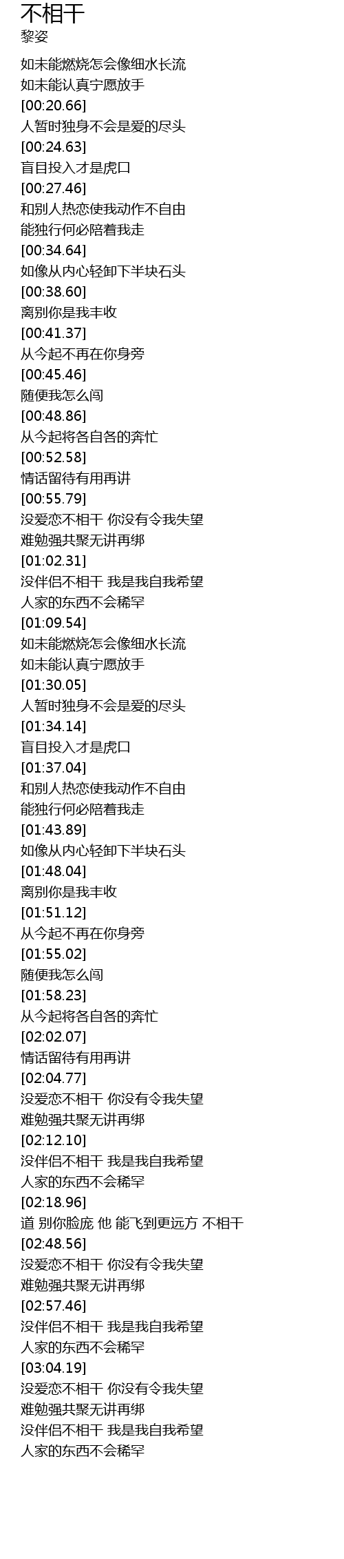 | [02:57.96] | 没伴侣不相干 我是我自我希望 |