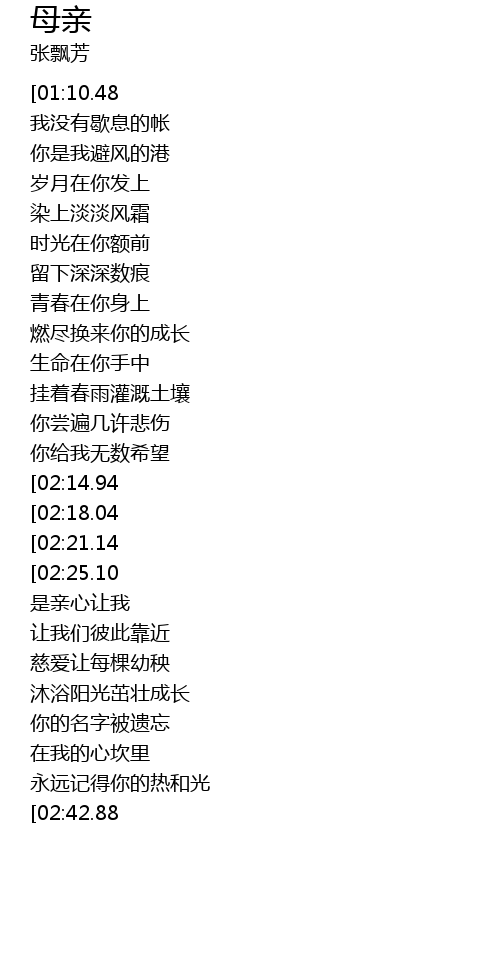 | Song | 母亲 |
