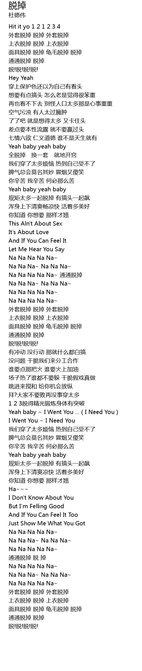 | [01:44.869] | Na Na Na Na Na~ 通通脱掉 |