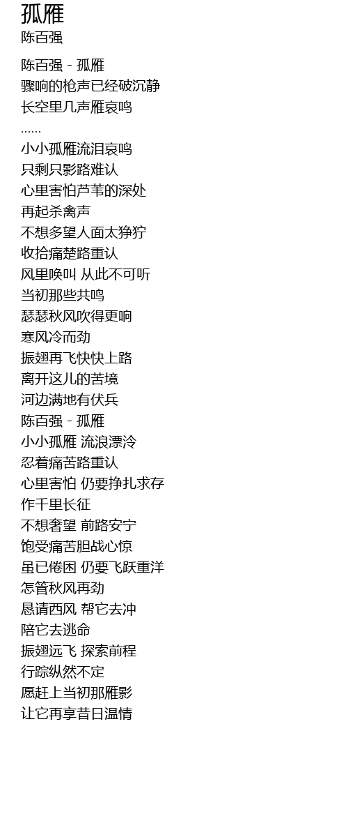| [00:01.05] | 陈百强-孤雁 |