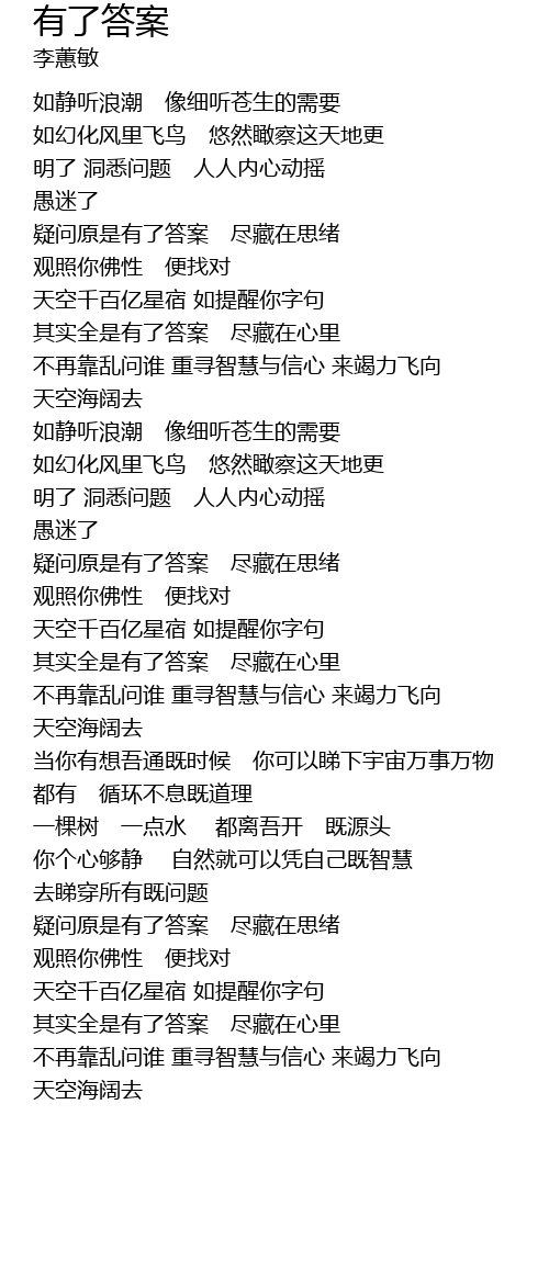 | [00:51.330] | yí wèn yuán shì yǒu le dá àn jǐn cáng zài sī xù |