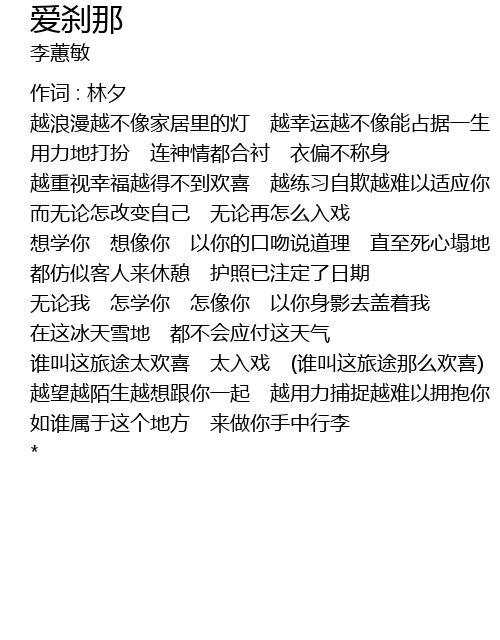 | 越浪漫越不像家居里的灯 越幸运越不像能占据一生 | |