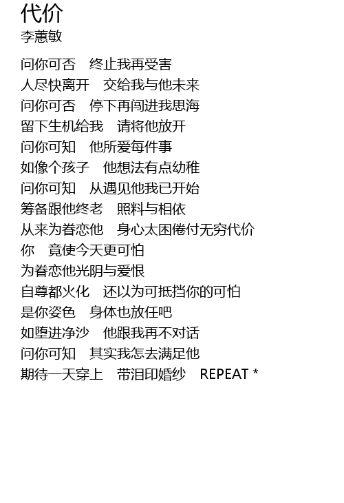 | 从来为眷恋他 身心太困倦付无穷代价 | |