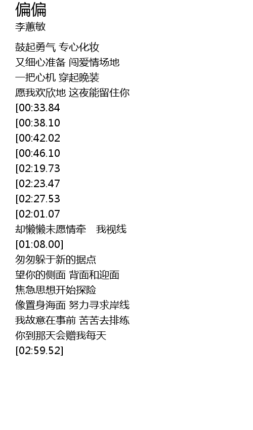 | [02:47.99][02:27.53][01:56.95][00:57.98] | 偏偏 你态度自然 |