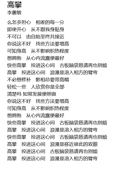 | [00:52.27] | 你说这不好 找些方法要增高 |
