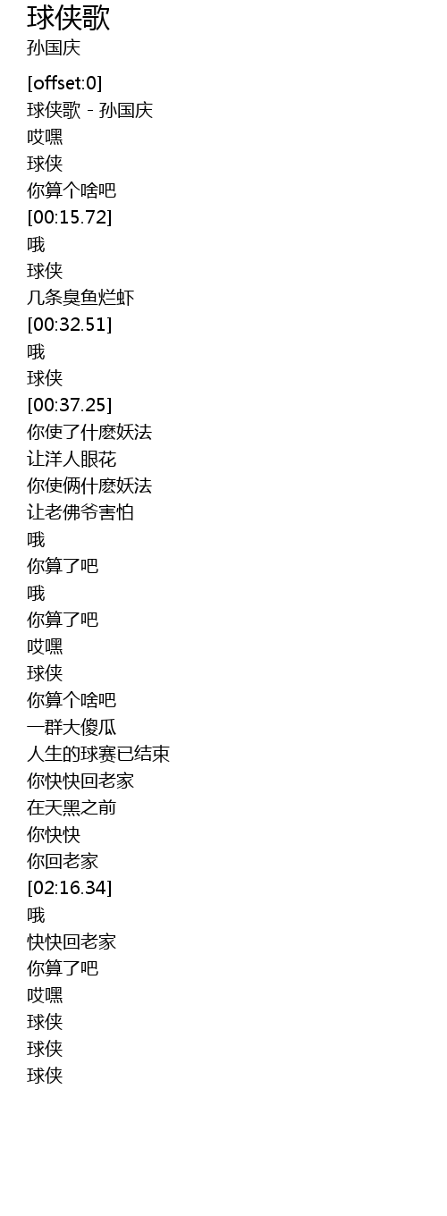 | [00:00.98] | 球侠歌 - 孙国庆 |