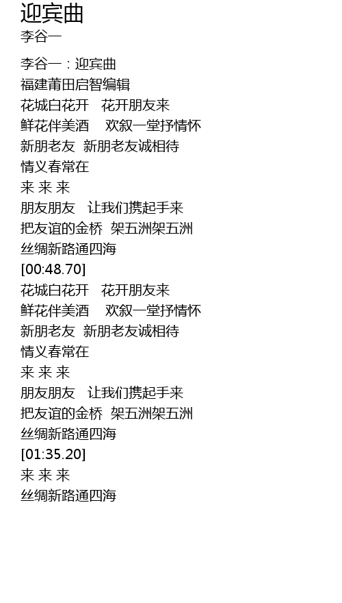 | [00:-0.50] | 李谷一:迎宾曲 |