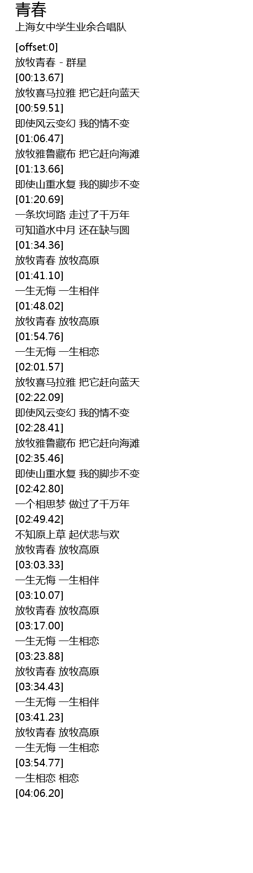 | [03:28.25] | 放牧青春 放牧高原 |