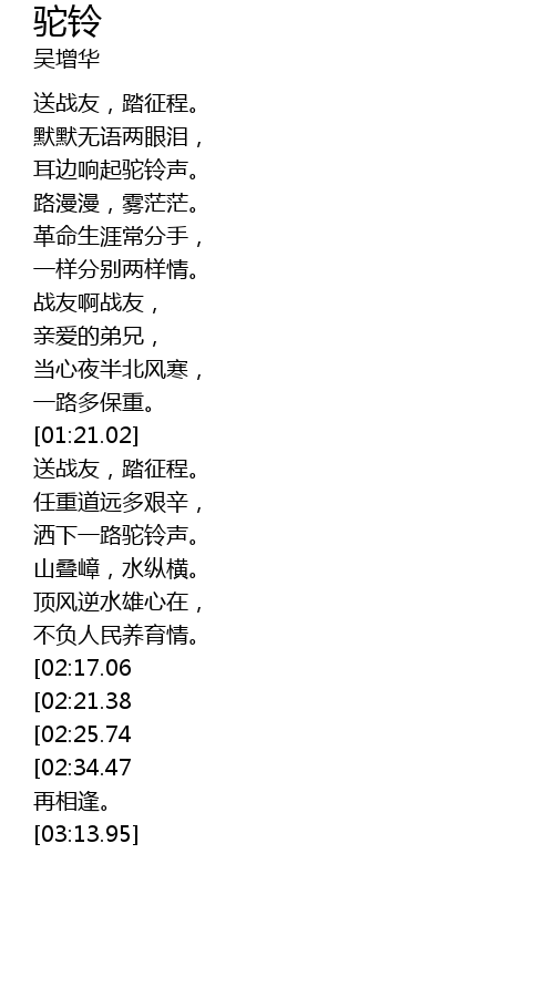 | [00:17.90] | 送战友,踏征程。 |