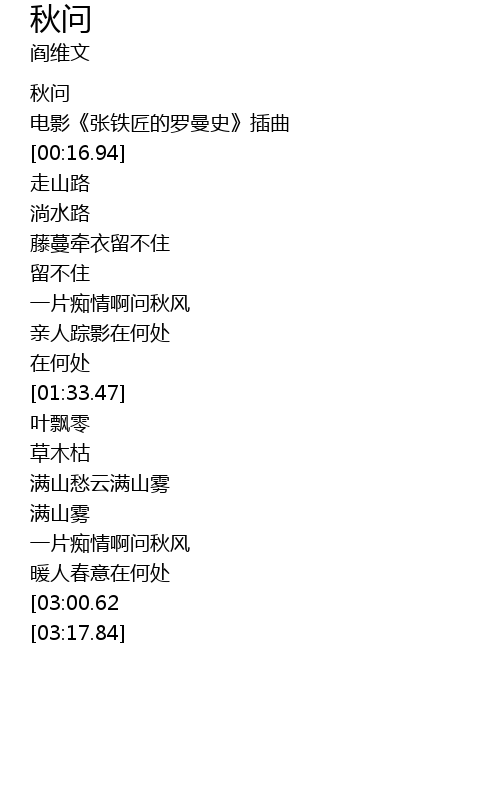| [02:36.72] | yi pian chi qing a wen qiu feng |