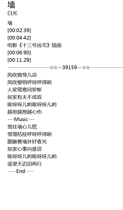 | [00:13.31] | -------------------☆☆~39159~☆☆------------------- |