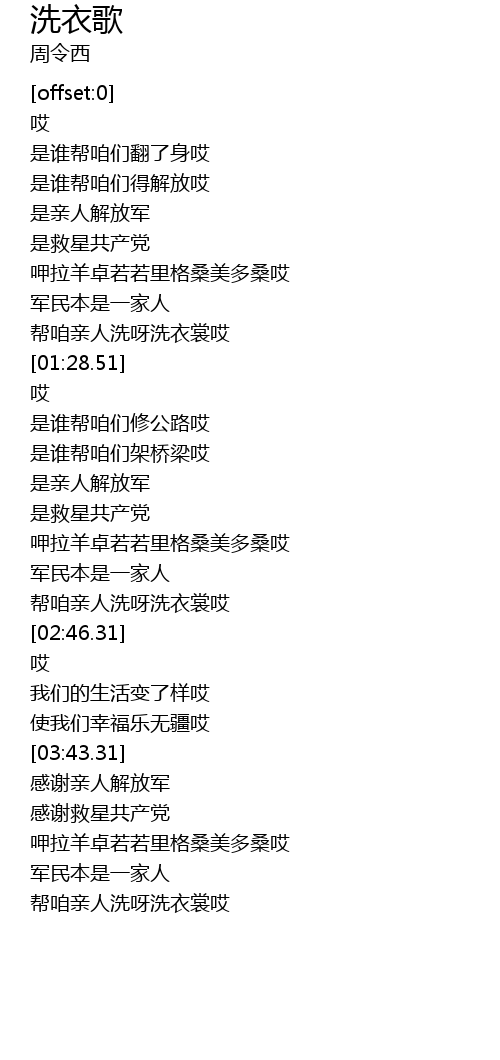 | [04:05.53] | 帮咱亲人洗呀洗衣裳哎 |