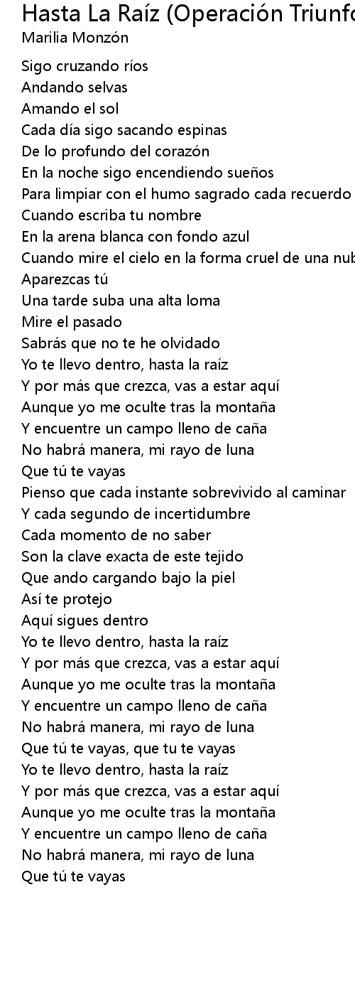 | [00:41.54] | Yo te llevo dentro, hasta la raíz |