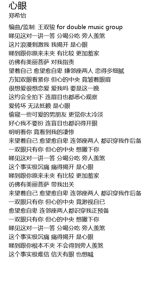 | [00:21.03] | biān qǔ jiān zhì: wáng shuāng jùn for double music group |