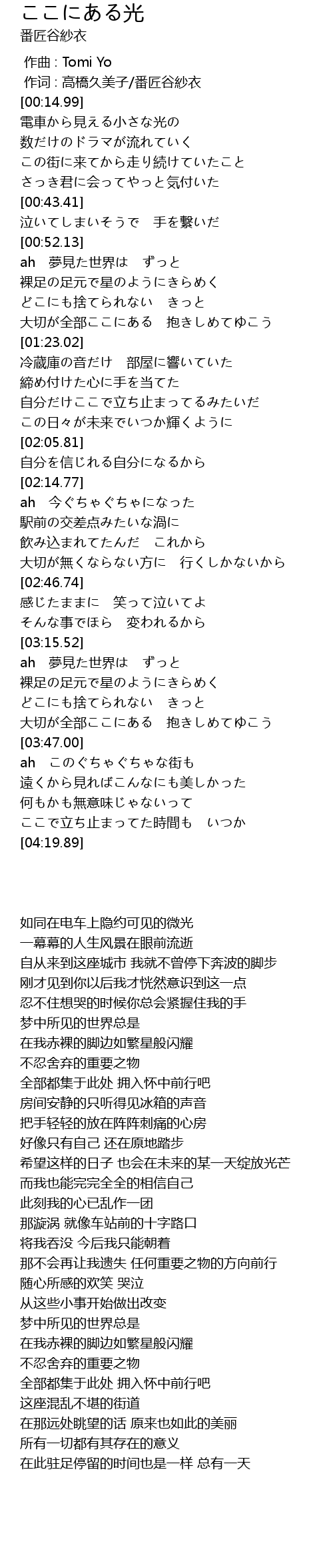 | [00:00.000] | zuò qǔ : Tomi Yo |