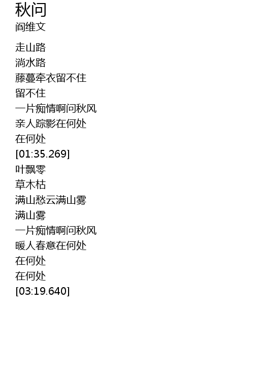 | [02:38.520] | yi pian chi qing a wen qiu feng |