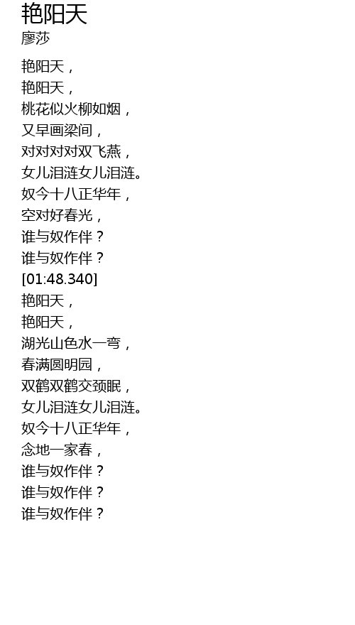 | [00:09.620] | 艳阳天, |