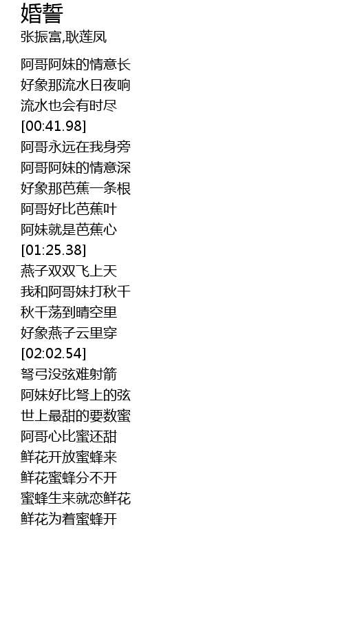 | [00:20.38] | 阿哥阿妹的情意长 |