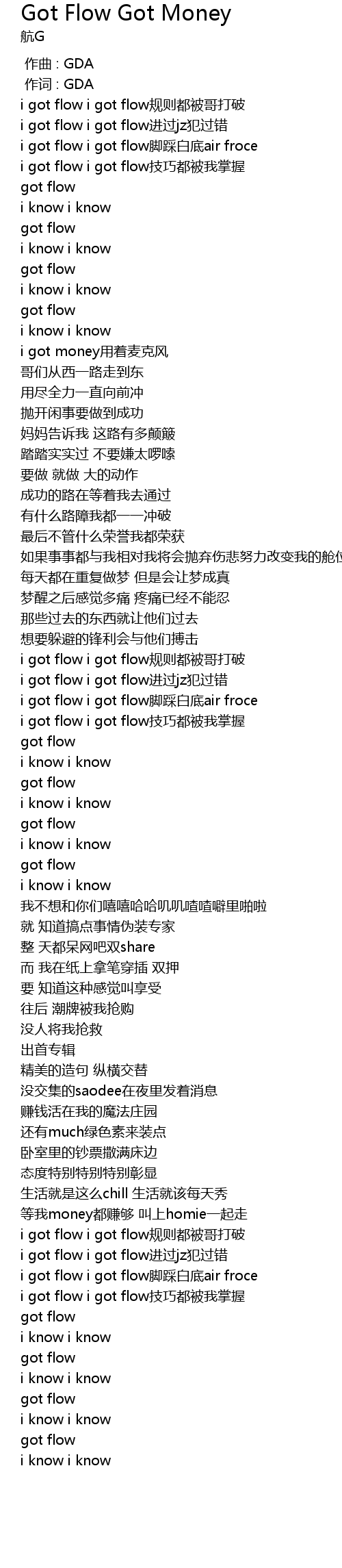 | [00:02.257] | i got flow i got flow gui ze dou bei ge da po |