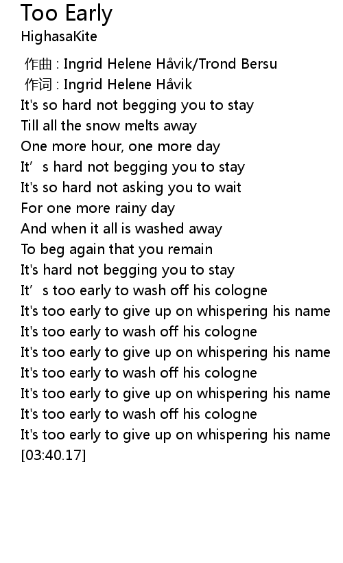 | [00:01.000] | 作词 : Ingrid Helene Håvik |