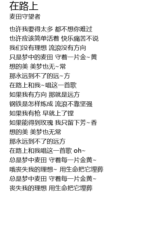 | [01:33.080] | 在路上和我唱这一首歌 oh~ |