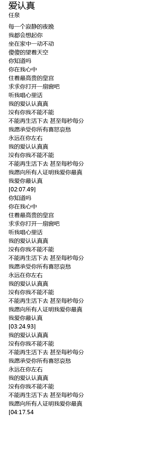 | [04:22.83][04:17.54] | 我爱你最认真 |