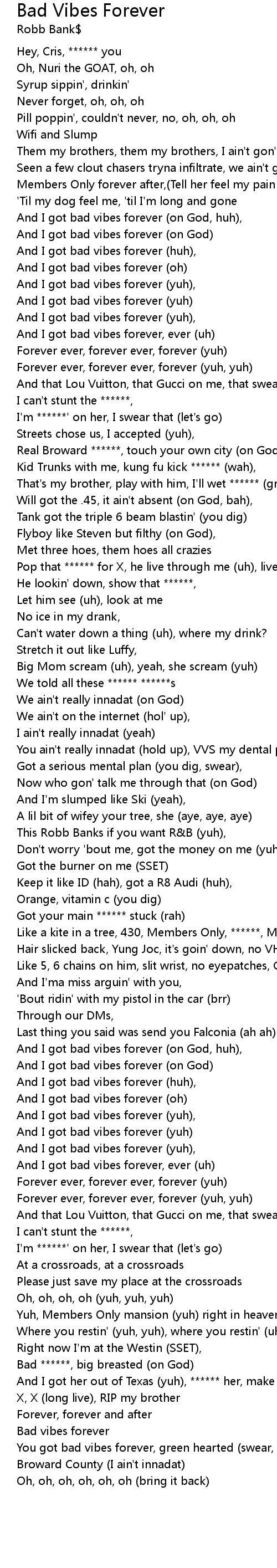 And I got bad vibes forever (yuh), |