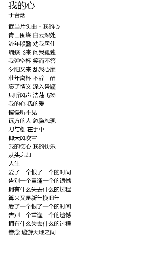 | [00:00.72] | 武当片头曲 - 我的心 |