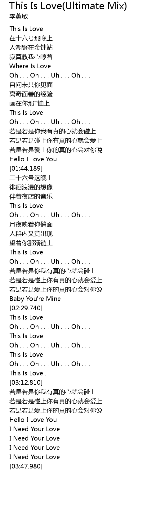| [03:44.10] | I Need Your Love |