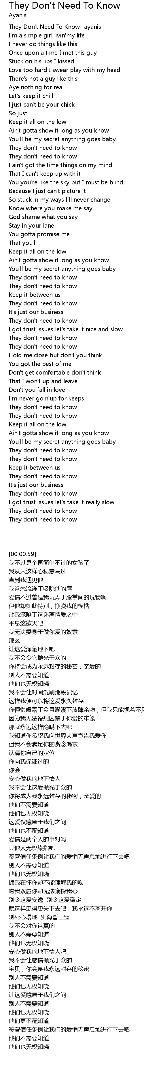 | [00:00.59] | They Don't Need To Know -ayanis |