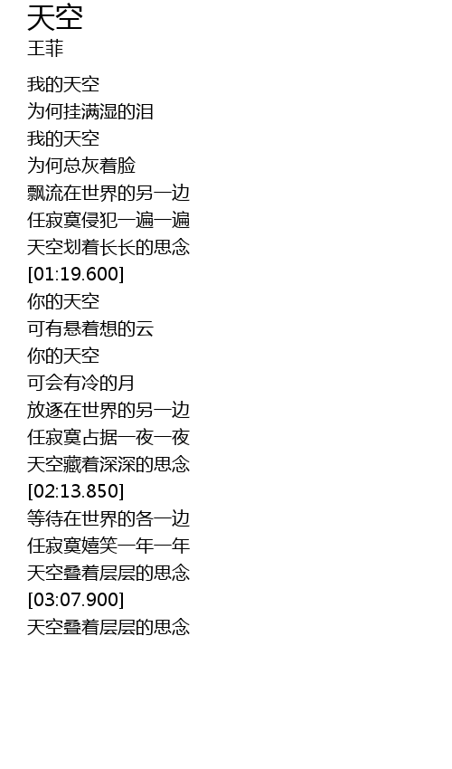 | [02:57.750] | tian kong die zhe ceng ceng de si nian |