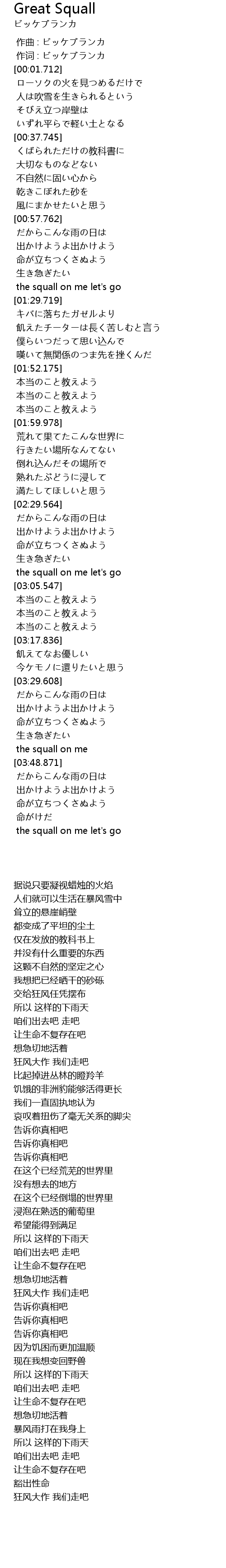 | [00:00.570] | 作词 : ビッケブランカ |