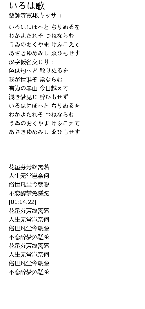 | [00:00.0] | いろはにほへと ちりぬるを |