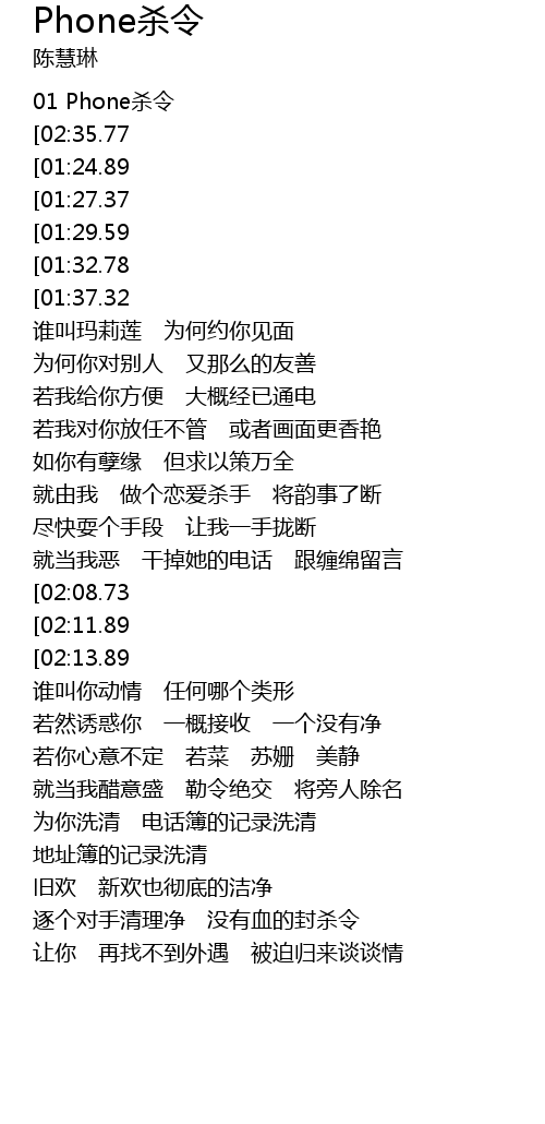| [02:17.78] | 为你洗清 电话簿的记录洗清 |