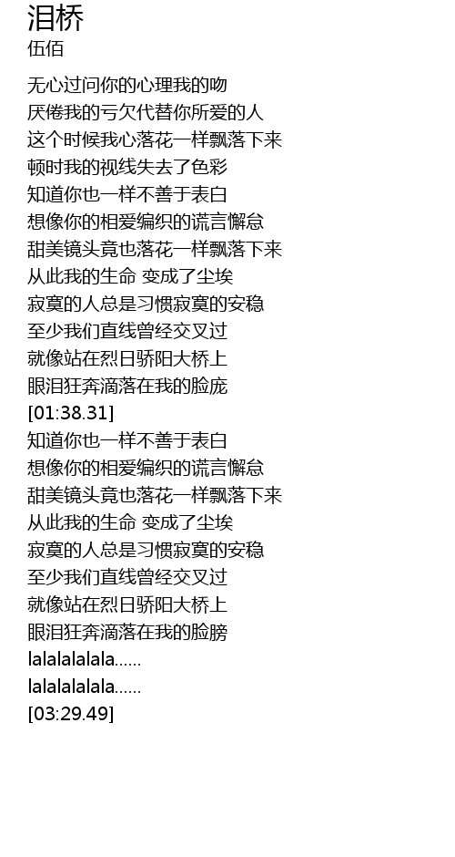 | [03:03.05] | jiu xiang zhan zai lie ri jiao yang da qiao shang |