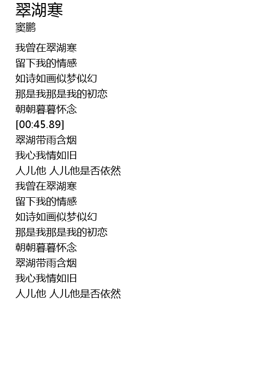 | [01:56.94] | wǒ céng zài cuì hú hán |