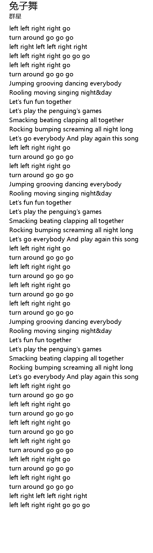 | [00:54.63] | Jumping grooving dancing everybody |