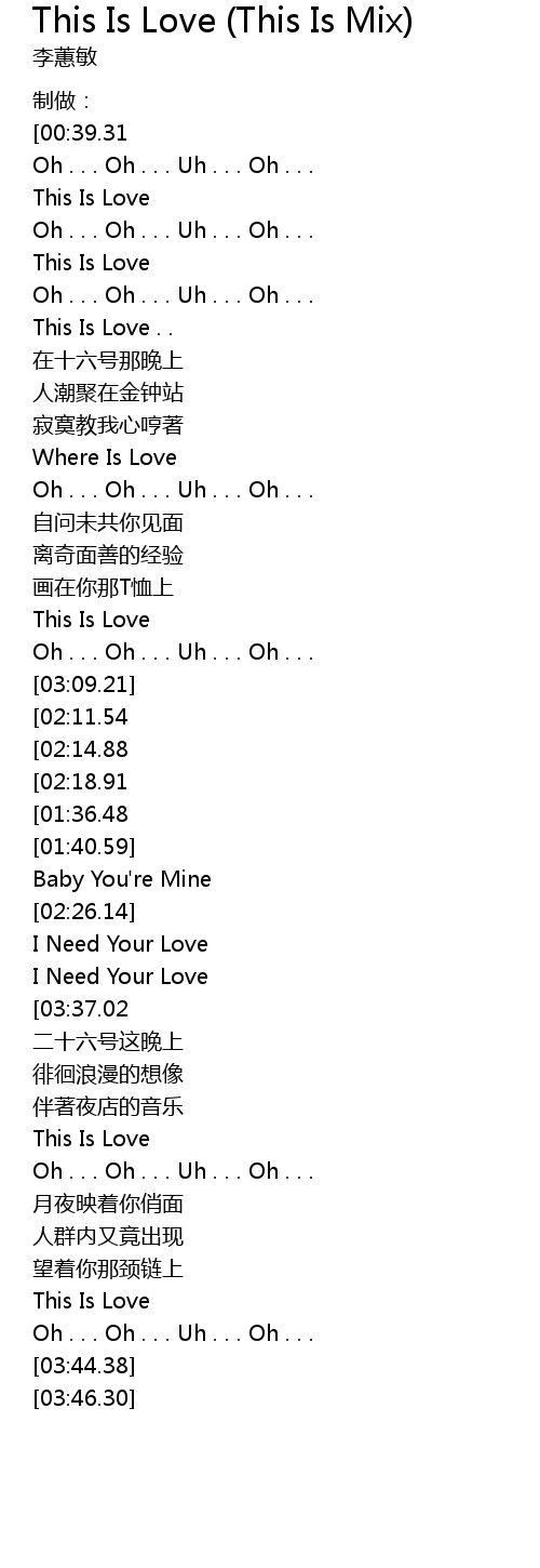| [03:40.41][03:37.02] | I Need Your Love |