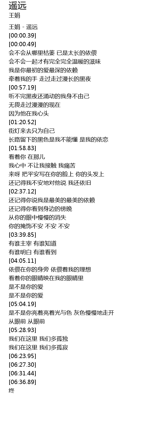 | [00:00.00] | 王娟 - 遥远 |