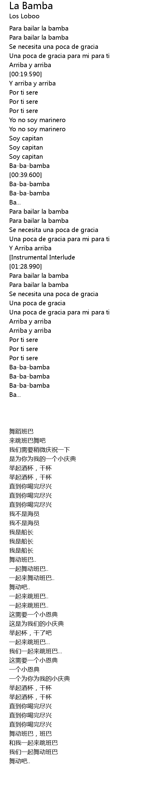 | [01:37.680] | Para bailar la bamba |