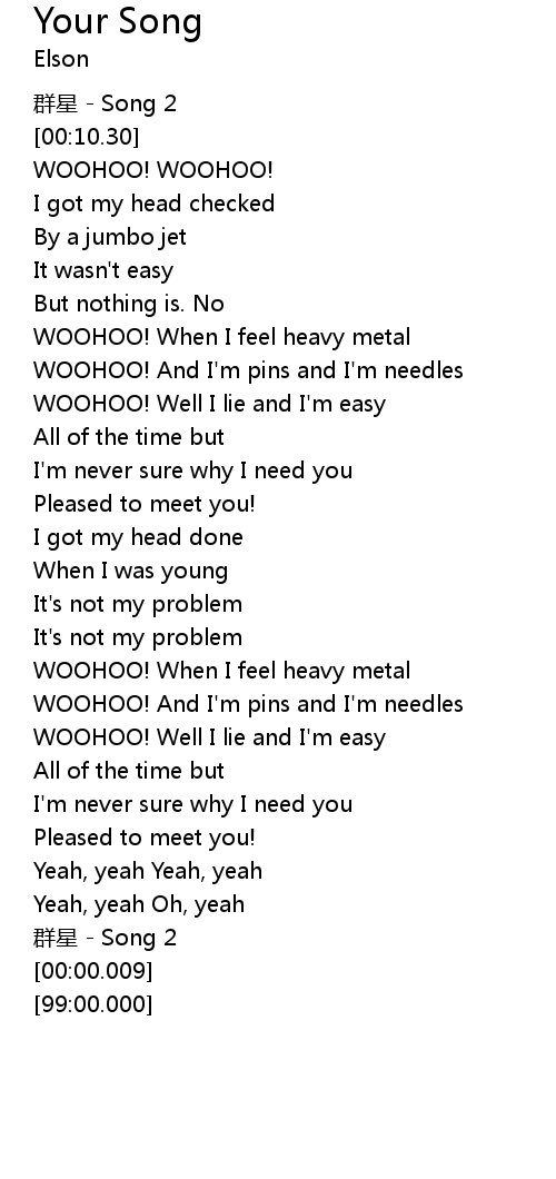 | [00:45.32] | WOOHOO! When I feel heavy metal |