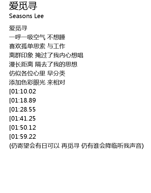 | [02:41.30][01:28.55] | * 爱觅寻 寻灵感至清早安寝 |