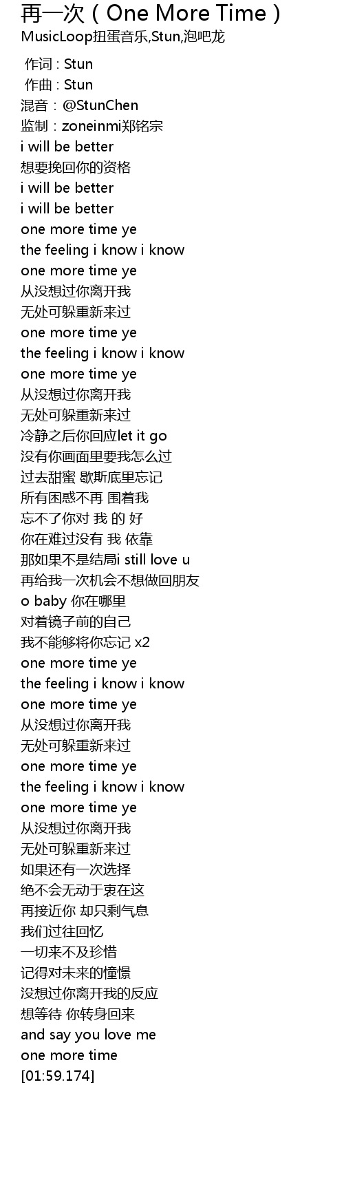 | [00:56.215] | zài gěi wǒ yī cì jī huì bù xiǎng zuò huí péng yǒu |