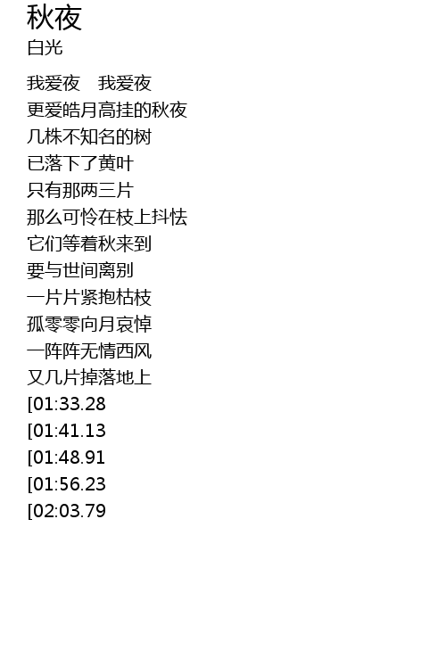 | [02:30.49][01:41.13] | 更爱皓月高挂的秋夜 |