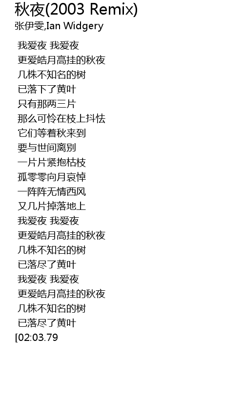 | [01:56.23] | 已落尽了黄叶 |