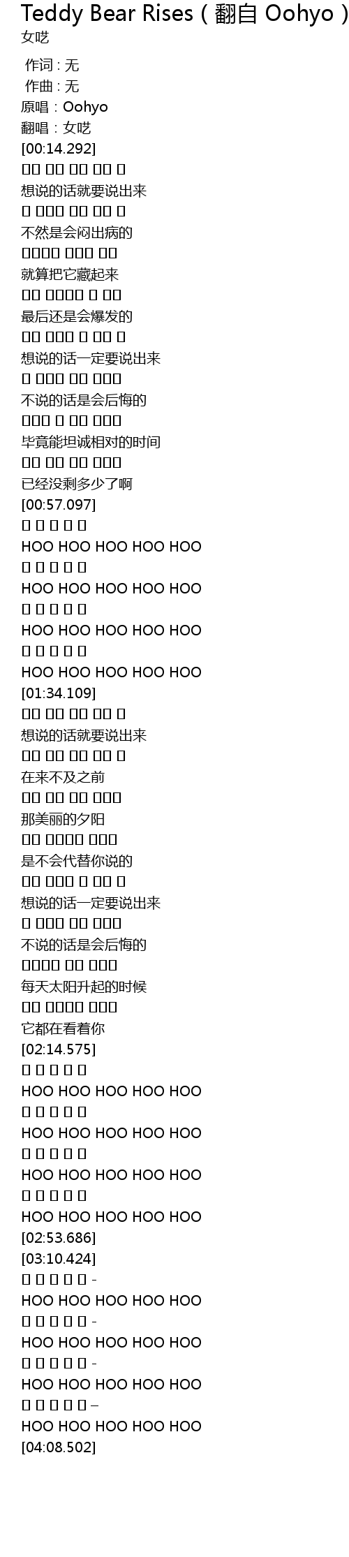 | [01:02.100] | HOO HOO HOO HOO HOO |