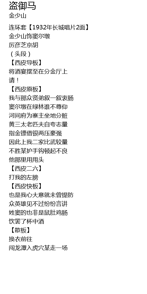 | [00:42.53] | 【西皮原板】 |