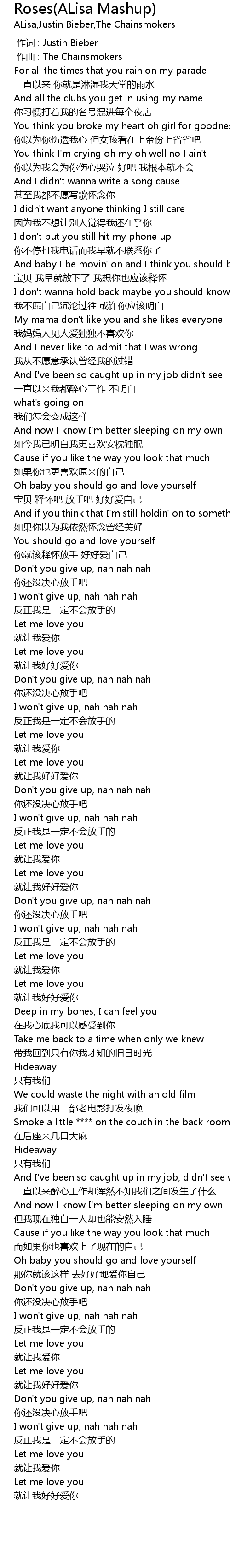 | [01:35.486] | Don' t you give up, nah nah nah |