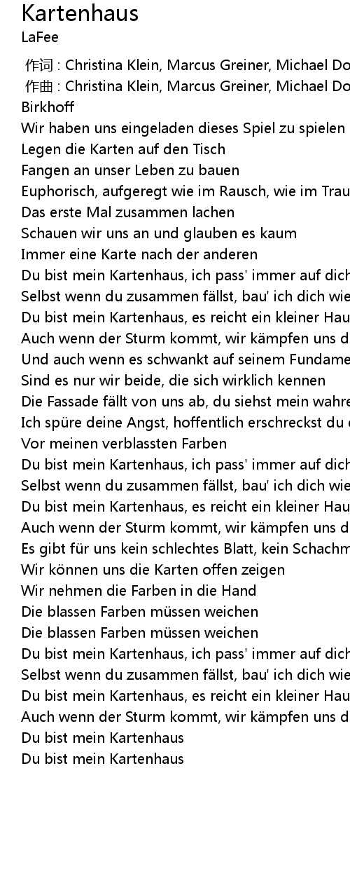 | [02:55.87] | Du bist mein Kartenhaus, es reicht ein kleiner Hauch |